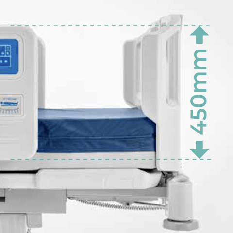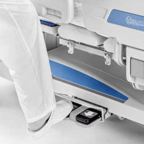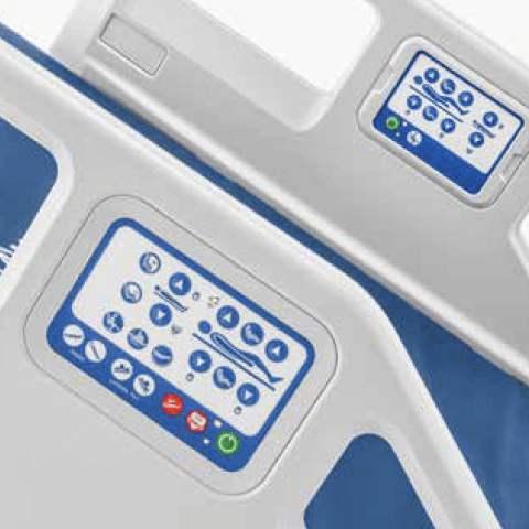 - All functions are accessible via the control panel built into the side rails on both sides of the bed.