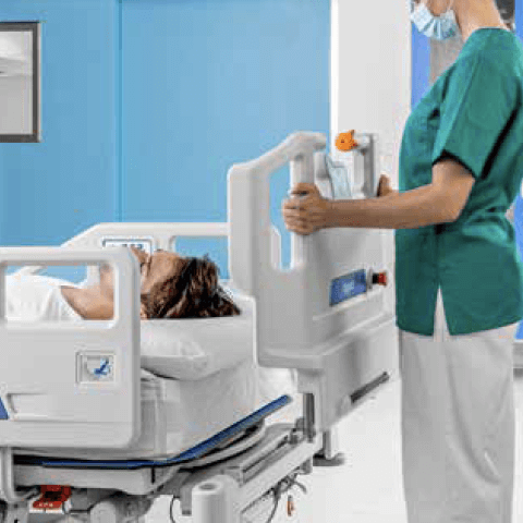 Lateral tilting of the mattress platform allows for a more ergonomic working platform for healthcare professionals. This way, nursing staff can operate on the patient without bending over, preventing injuries and reducing fatigue at work.